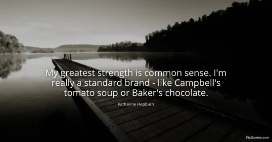 Hepburn, Katharine. "My greatest strength is common sense. I'm really a standard brand - like Campbell's tomato soup or Baker's chocolate." FixQuotes. January 17, 2026. https://fixquotes.com/quotes/my-greatest-strength-is-common-sense-im-really-a-28659/.
