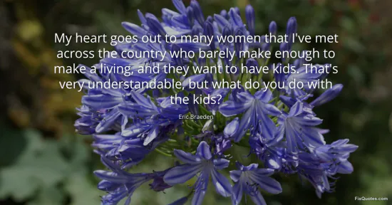 Braeden, Eric. "My heart goes out to many women that I've met across the country who barely make enough to make a living, and they want to have kids. That's very understandable, but what do you do with the kids?" FixQuotes. January 17, 2026. https://fixquotes.com/quotes/my-heart-goes-out-to-many-women-that-ive-met-47374/.