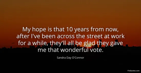 O'Connor, Sandra Day. (2026, January 15). My hope is that 10 years from now, after I've been across the street at work for a while, they'll all be glad they gave me that wonderful vote. FixQuotes. https://fixquotes.com/quotes/my-hope-is-that-10-years-from-now-after-ive-been-154108/
