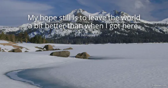 Henson, Jim. "My hope still is to leave the world a bit better than when I got here." FixQuotes. January 15, 2026. https://fixquotes.com/quotes/my-hope-still-is-to-leave-the-world-a-bit-better-80397/.