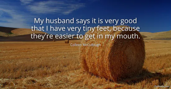 McCullough, Colleen. "My husband says it is very good that I have very tiny feet, because they're easier to get in my mouth." FixQuotes. January 16, 2026. https://fixquotes.com/quotes/my-husband-says-it-is-very-good-that-i-have-very-110661/.