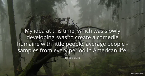 Sirk, Douglas. (2026, January 17). My idea at this time, which was slowly developing, was to create a comedie humaine with little people, average people - samples from every period in American life. FixQuotes. https://fixquotes.com/quotes/my-idea-at-this-time-which-was-slowly-developing-44742/