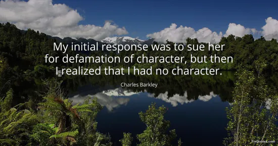 Barkley lands the punchline by weaponizing the very thing celebrities are supposed to protect: their image. The setup is pure tabloid logic - sue for defamation, defend your name, restore your brand. Then he yanks the rug out with a self-own: if you have "no character", there is nothing to defame. It reads like humility, but it is also a clever refusal to play the usual fame game where every slight becomes a legal threat and every reputation is treated like intellectual property.