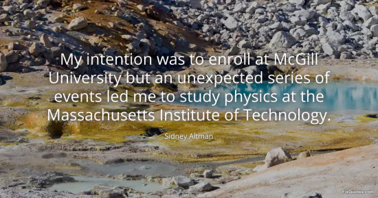 Altman, Sidney. (2026, January 17). My intention was to enroll at McGill University but an unexpected series of events led me to study physics at the Massachusetts Institute of Technology. FixQuotes. https://fixquotes.com/quotes/my-intention-was-to-enroll-at-mcgill-university-71319/