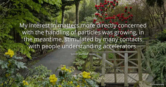 Meer, Simon van der. (2026, January 16). My interest in matters more directly concerned with the handling of particles was growing, in the meantime, stimulated by many contacts with people understanding accelerators. FixQuotes. https://fixquotes.com/quotes/my-interest-in-matters-more-directly-concerned-110395/