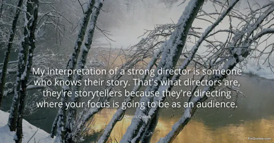 Quaid, Dennis. (2026, February 13). My interpretation of a strong director is someone who knows their story. That's what directors are, they're storytellers because they're directing where your focus is going to be as an audience. FixQuotes. https://fixquotes.com/quotes/my-interpretation-of-a-strong-director-is-someone-161226/