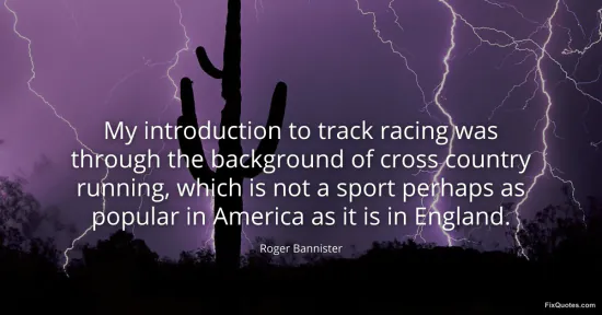 Bannister, Roger. "My introduction to track racing was through the background of cross country running, which is not a sport perhaps as popular in America as it is in England." FixQuotes. January 16, 2026. https://fixquotes.com/quotes/my-introduction-to-track-racing-was-through-the-98531/.