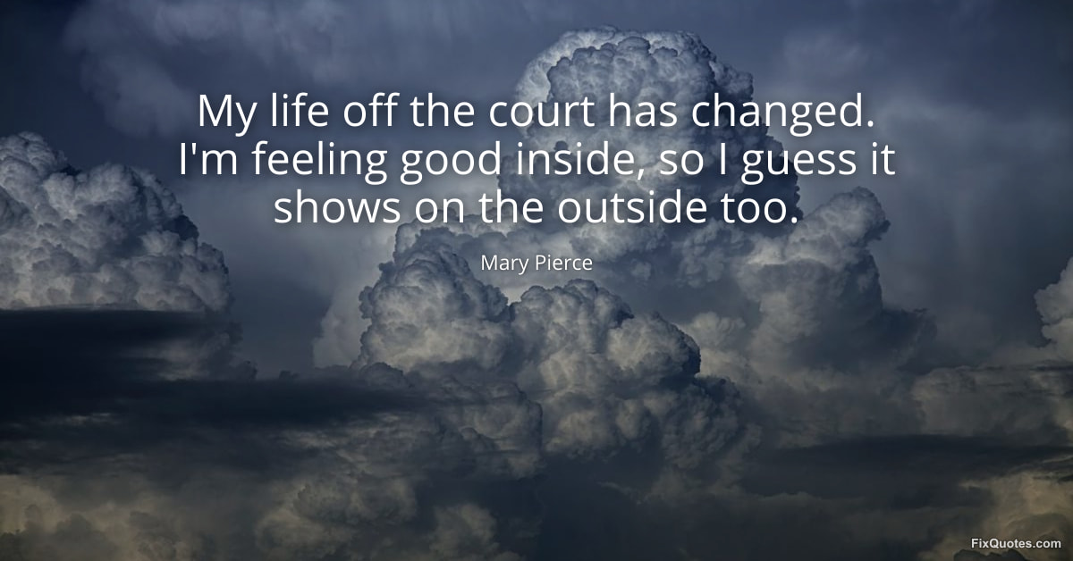 Pierce, Mary. "My life off the court has changed. I'm feeling good inside, so I guess it shows on the outside too." FixQuotes. January 15, 2026. https://fixquotes.com/quotes/my-life-off-the-court-has-changed-im-feeling-good-165456/.