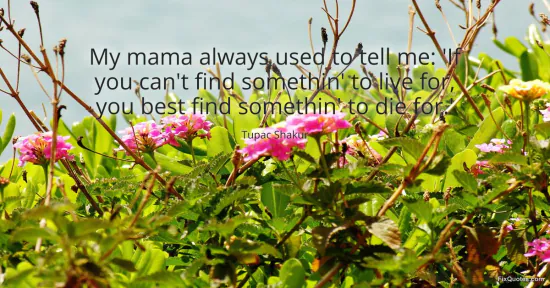 Shakur, Tupac. (2026, January 18). My mama always used to tell me: 'If you can't find somethin' to live for, you best find somethin' to die for.'. FixQuotes. https://fixquotes.com/quotes/my-mama-always-used-to-tell-me-if-you-cant-find-10507/