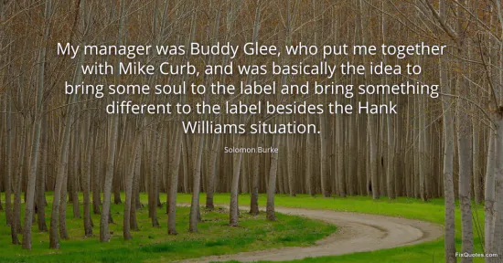 Burke, Solomon. (2026, January 16). My manager was Buddy Glee, who put me together with Mike Curb, and was basically the idea to bring some soul to the label and bring something different to the label besides the Hank Williams situation. FixQuotes. https://fixquotes.com/quotes/my-manager-was-buddy-glee-who-put-me-together-123436/