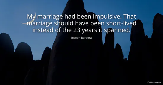 There’s something almost cartoonishly blunt about Barbera’s phrasing, and that’s the point: he strips a 23-year marriage down to a timing error. “Impulsive” is doing heavy work here, not as a romantic confession but as a creative person’s shorthand for a bad first draft - the kind you wouldn’t keep if you had an editor, or the kind you’d punch up in revision. Then he drops the quiet knife: “should have been short-lived.” It’s a counterfactual delivered with the calm of someone rewriting storyboards, suggesting the real tragedy wasn’t the mistake, but the refusal (or inability) to cut it.