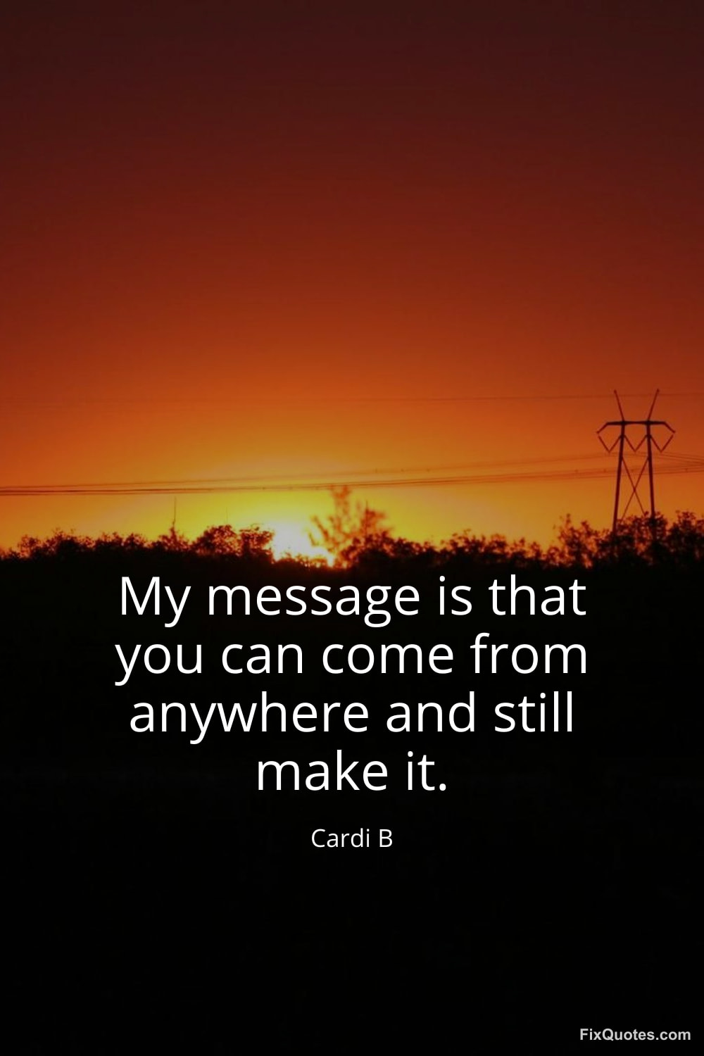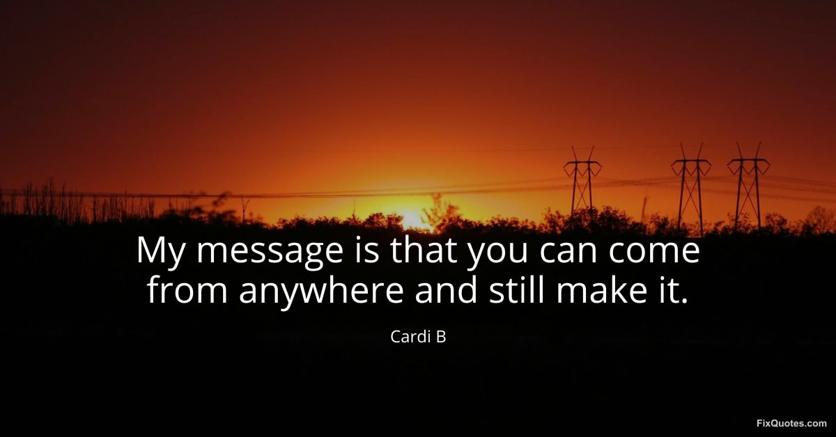 B, Cardi. (2026, February 8). My message is that you can come from anywhere and still make it. FixQuotes. https://fixquotes.com/quotes/my-message-is-that-you-can-come-from-anywhere-and-184971/
