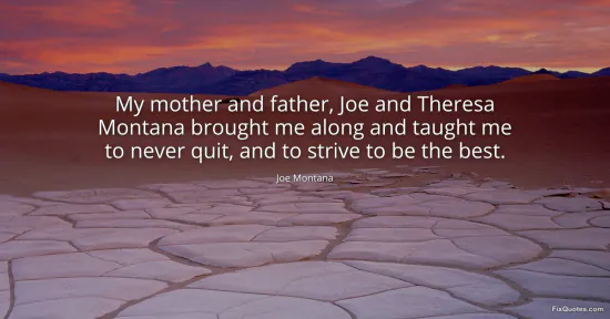 Montana, Joe. "My mother and father, Joe and Theresa Montana brought me along and taught me to never quit, and to strive to be the best." FixQuotes. January 16, 2026. https://fixquotes.com/quotes/my-mother-and-father-joe-and-theresa-montana-90646/.