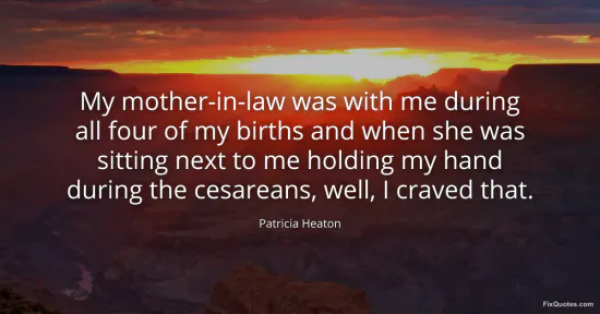 Heaton, Patricia. "My mother-in-law was with me during all four of my births and when she was sitting next to me holding my hand during the cesareans, well, I craved that." FixQuotes. January 15, 2026. https://fixquotes.com/quotes/my-mother-in-law-was-with-me-during-all-four-of-151931/.