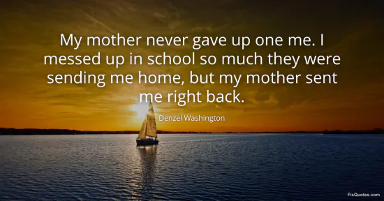 Washington, Denzel. "My mother never gave up one me. I messed up in school so much they were sending me home, but my mother sent me right back." FixQuotes. January 17, 2026. https://fixquotes.com/quotes/my-mother-never-gave-up-one-me-i-messed-up-in-48348/.
