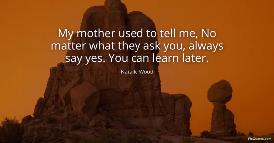 Wood, Natalie. "My mother used to tell me, No matter what they ask you, always say yes. You can learn later." FixQuotes. January 16, 2026. https://fixquotes.com/quotes/my-mother-used-to-tell-me-no-matter-what-they-ask-115492/.