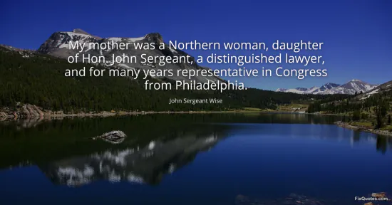 Wise, John Sergeant. "My mother was a Northern woman, daughter of Hon. John Sergeant, a distinguished lawyer, and for many years representative in Congress from Philadelphia." FixQuotes. January 15, 2026. https://fixquotes.com/quotes/my-mother-was-a-northern-woman-daughter-of-hon-158715/.