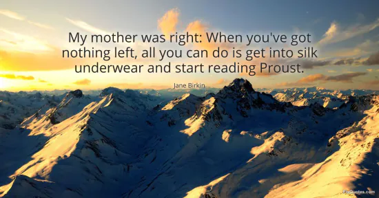 Birkin, Jane. "My mother was right: When you've got nothing left, all you can do is get into silk underwear and start reading Proust." FixQuotes. January 16, 2026. https://fixquotes.com/quotes/my-mother-was-right-when-youve-got-nothing-left-113056/.