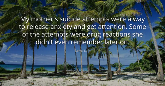 Luft, Lorna. "My mother's suicide attempts were a way to release anxiety and get attention. Some of the attempts were drug reactions she didn't even remember later on." FixQuotes. January 17, 2026. https://fixquotes.com/quotes/my-mothers-suicide-attempts-were-a-way-to-release-81925/.