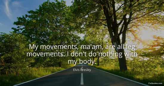 Presley, Elvis. (2026, January 18). My movements, ma'am, are all leg movements. I don't do nothing with my body. FixQuotes. https://fixquotes.com/quotes/my-movements-maam-are-all-leg-movements-i-dont-do-19379/
