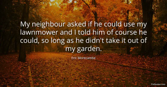 Morecambe, Eric. (2026, January 15). My neighbour asked if he could use my lawnmower and I told him of course he could, so long as he didn't take it out of my garden. FixQuotes. https://fixquotes.com/quotes/my-neighbour-asked-if-he-could-use-my-lawnmower-137158/