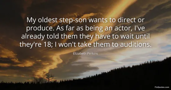Perkins, Elizabeth. "My oldest step-son wants to direct or produce. As far as being an actor, I've already told them they have to wait until they're 18; I won't take them to auditions." FixQuotes. January 16, 2026. https://fixquotes.com/quotes/my-oldest-step-son-wants-to-direct-or-produce-as-132046/.