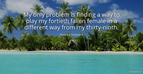Stanwyck, Barbara. "My only problem is finding a way to play my fortieth fallen female in a different way from my thirty-ninth." FixQuotes. January 17, 2026. https://fixquotes.com/quotes/my-only-problem-is-finding-a-way-to-play-my-43205/.