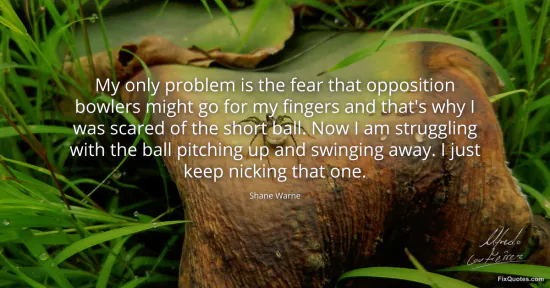 Warne, Shane. "My only problem is the fear that opposition bowlers might go for my fingers and that's why I was scared of the short ball. Now I am struggling with the ball pitching up and swinging away. I just keep nicking that one." FixQuotes. January 16, 2026. https://fixquotes.com/quotes/my-only-problem-is-the-fear-that-opposition-106644/.