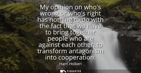 "My opinion on who's wrong or who's right has nothing to do with the fact that we have to bring together people who are against each other, to transform antagonism into cooperation"