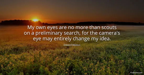 Weston, Edward. (2026, January 17). My own eyes are no more than scouts on a preliminary search, for the camera's eye may entirely change my idea. FixQuotes. https://fixquotes.com/quotes/my-own-eyes-are-no-more-than-scouts-on-a-51344/