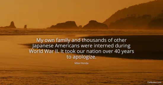 Honda, Mike. "My own family and thousands of other Japanese Americans were interned during World War II. It took our nation over 40 years to apologize." FixQuotes. January 15, 2026. https://fixquotes.com/quotes/my-own-family-and-thousands-of-other-japanese-93759/.