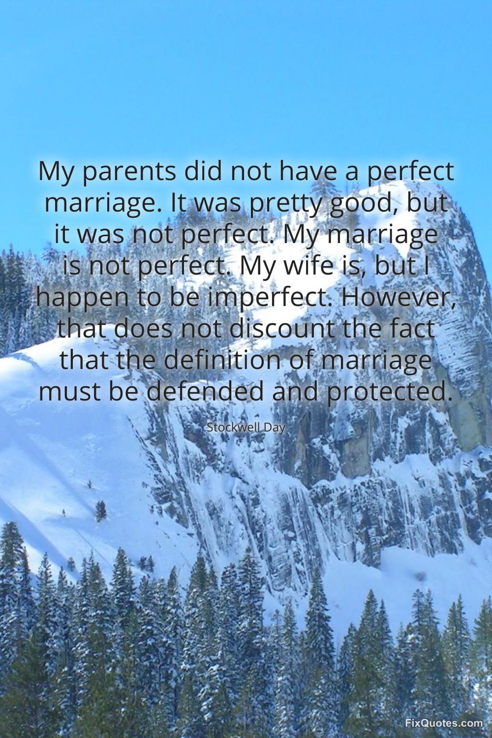 Day, Stockwell. (2026, January 15). My parents did not have a perfect marriage. It was pretty good, but it was not perfect. My marriage is not perfect. My wife is, but I happen to be imperfect. However, that does not discount the fact that the definition of marriage must be defended and protected. FixQuotes. https://fixquotes.com/quotes/my-parents-did-not-have-a-perfect-marriage-it-was-92108/