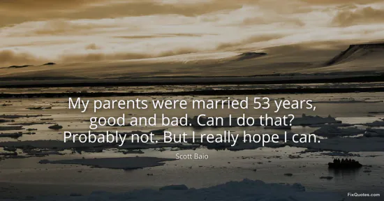 Baio, Scott. (2026, January 15). My parents were married 53 years, good and bad. Can I do that? Probably not. But I really hope I can. FixQuotes. https://fixquotes.com/quotes/my-parents-were-married-53-years-good-and-bad-can-148043/