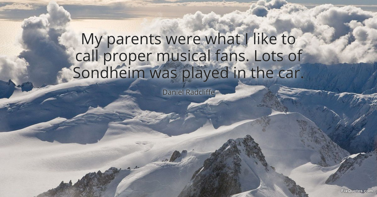 Radcliffe, Daniel. (2026, January 16). My parents were what I like to call proper musical fans. Lots of Sondheim was played in the car. FixQuotes. https://fixquotes.com/quotes/my-parents-were-what-i-like-to-call-proper-124036/