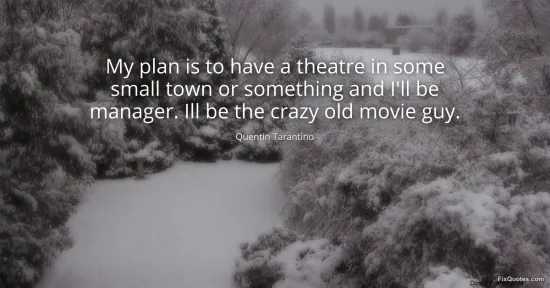 Tarantino, Quentin. (2026, January 15). My plan is to have a theatre in some small town or something and I'll be manager. Ill be the crazy old movie guy. FixQuotes. https://fixquotes.com/quotes/my-plan-is-to-have-a-theatre-in-some-small-town-83369/