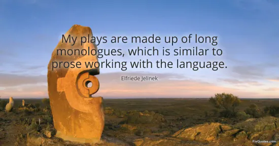 Jelinek, Elfriede. (2026, January 18). My plays are made up of long monologues, which is similar to prose working with the language. FixQuotes. https://fixquotes.com/quotes/my-plays-are-made-up-of-long-monologues-which-is-12596/