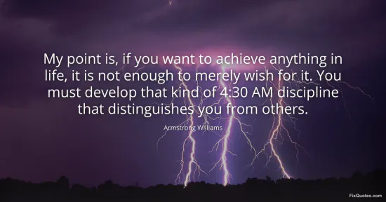 Williams, Armstrong. "My point is, if you want to achieve anything in life, it is not enough to merely wish for it. You must develop that kind of 4:30 AM discipline that distinguishes you from others." FixQuotes. January 16, 2026. https://fixquotes.com/quotes/my-point-is-if-you-want-to-achieve-anything-in-117526/.