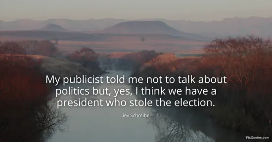 Schreiber, Liev. (2026, January 16). My publicist told me not to talk about politics but, yes, I think we have a president who stole the election. FixQuotes. https://fixquotes.com/quotes/my-publicist-told-me-not-to-talk-about-politics-107670/