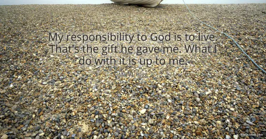 "My responsibility to God is to live. That's the gift he gave me. What I do with it is up to me." FixQuotes, 17 Jan. 2026, https://fixquotes.com/quotes/my-responsibility-to-god-is-to-live-thats-the-81990/. Accessed 24 Feb. 2026.