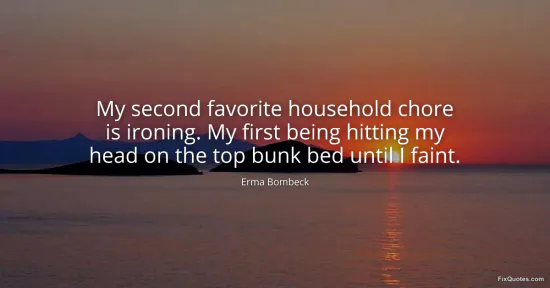 "My second favorite household chore is ironing. My first being hitting my head on the top bunk bed until I faint"