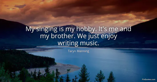Manning, Taryn. (2026, January 16). My singing is my hobby. It's me and my brother. We just enjoy writing music. FixQuotes. https://fixquotes.com/quotes/my-singing-is-my-hobby-its-me-and-my-brother-we-86424/