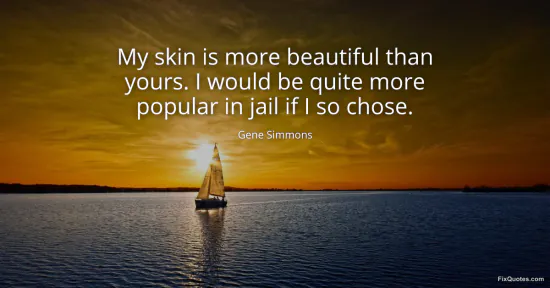 Simmons, Gene. "My skin is more beautiful than yours. I would be quite more popular in jail if I so chose." FixQuotes. January 15, 2026. https://fixquotes.com/quotes/my-skin-is-more-beautiful-than-yours-i-would-be-146451/.