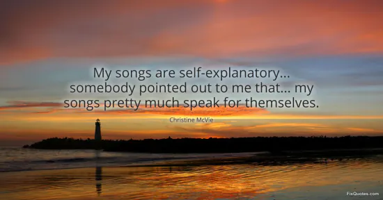 McVie, Christine. "My songs are self-explanatory... somebody pointed out to me that... my songs pretty much speak for themselves." FixQuotes. January 15, 2026. https://fixquotes.com/quotes/my-songs-are-self-explanatory-somebody-pointed-160144/.