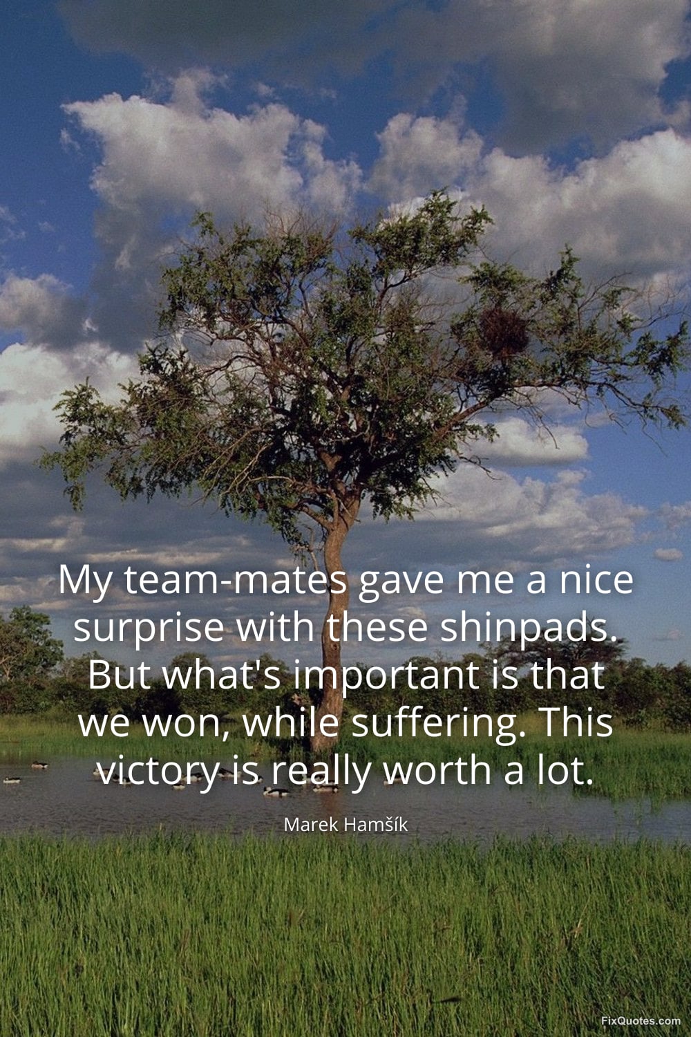 Hamšík, Marek. "My team-mates gave me a nice surprise with these shinpads. But what's important is that we won, while suffering. This victory is really worth a lot." FixQuotes. March 8, 2026. https://fixquotes.com/quotes/my-team-mates-gave-me-a-nice-surprise-with-these-185739/.