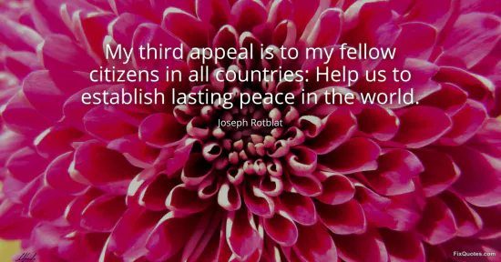 Rotblat, Joseph. (2026, January 16). My third appeal is to my fellow citizens in all countries: Help us to establish lasting peace in the world. FixQuotes. https://fixquotes.com/quotes/my-third-appeal-is-to-my-fellow-citizens-in-all-84043/