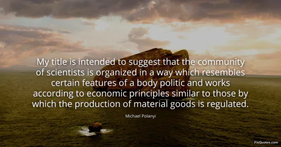 Polanyi, Michael. (2026, January 17). My title is intended to suggest that the community of scientists is organized in a way which resembles certain features of a body politic and works according to economic principles similar to those by which the production of material goods is regulated. FixQuotes. https://fixquotes.com/quotes/my-title-is-intended-to-suggest-that-the-51634/