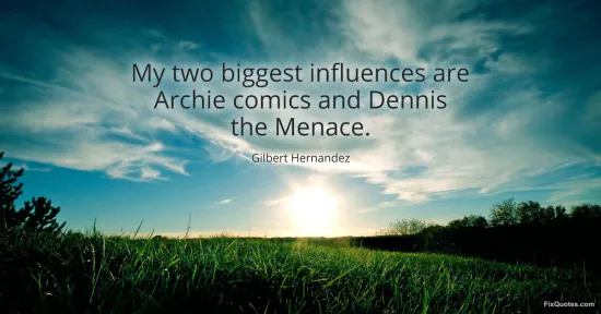 Hernandez, Gilbert. (2026, January 15). My two biggest influences are Archie comics and Dennis the Menace. FixQuotes. https://fixquotes.com/quotes/my-two-biggest-influences-are-archie-comics-and-167513/