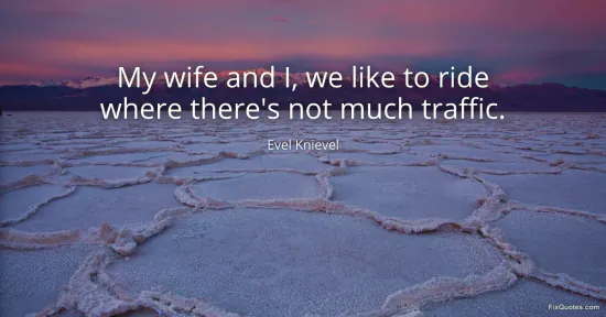 Knievel, Evel. (2026, January 15). My wife and I, we like to ride where there's not much traffic. FixQuotes. https://fixquotes.com/quotes/my-wife-and-i-we-like-to-ride-where-theres-not-142253/