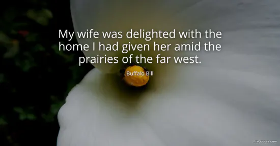 Bill, Buffalo. "My wife was delighted with the home I had given her amid the prairies of the far west." FixQuotes. January 17, 2026. https://fixquotes.com/quotes/my-wife-was-delighted-with-the-home-i-had-given-24102/.