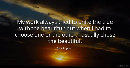 Stoppard, Tom. (2026, January 15). My work always tried to unite the true with the beautiful; but when I had to choose one or the other, I usually chose the beautiful. FixQuotes. https://fixquotes.com/quotes/my-work-always-tried-to-unite-the-true-with-the-29476/